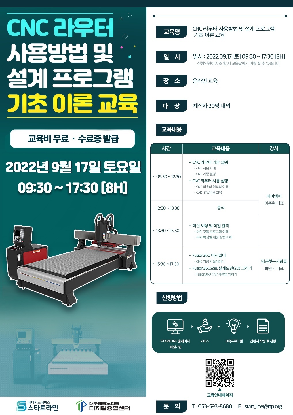 📢 메이커스페이스 전문랩 스타트라인에서 CNC라우터 사용방법 및 설계 프로그램 기초 이론 교육 수업을 진행합니다!