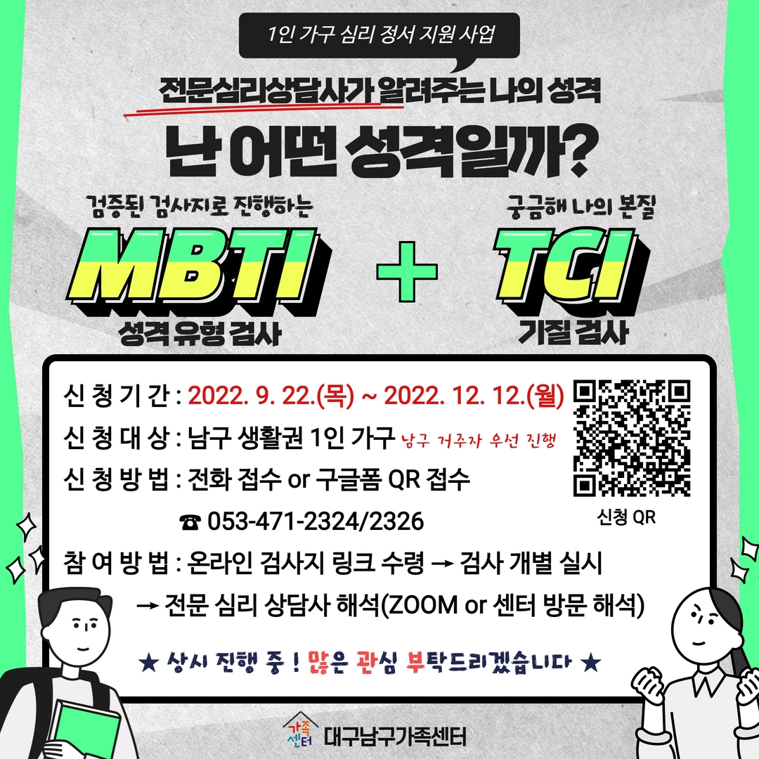 💡 내용 : 전문상담사가 해석해주는 MBTI 성격, TCI(기질) 검사