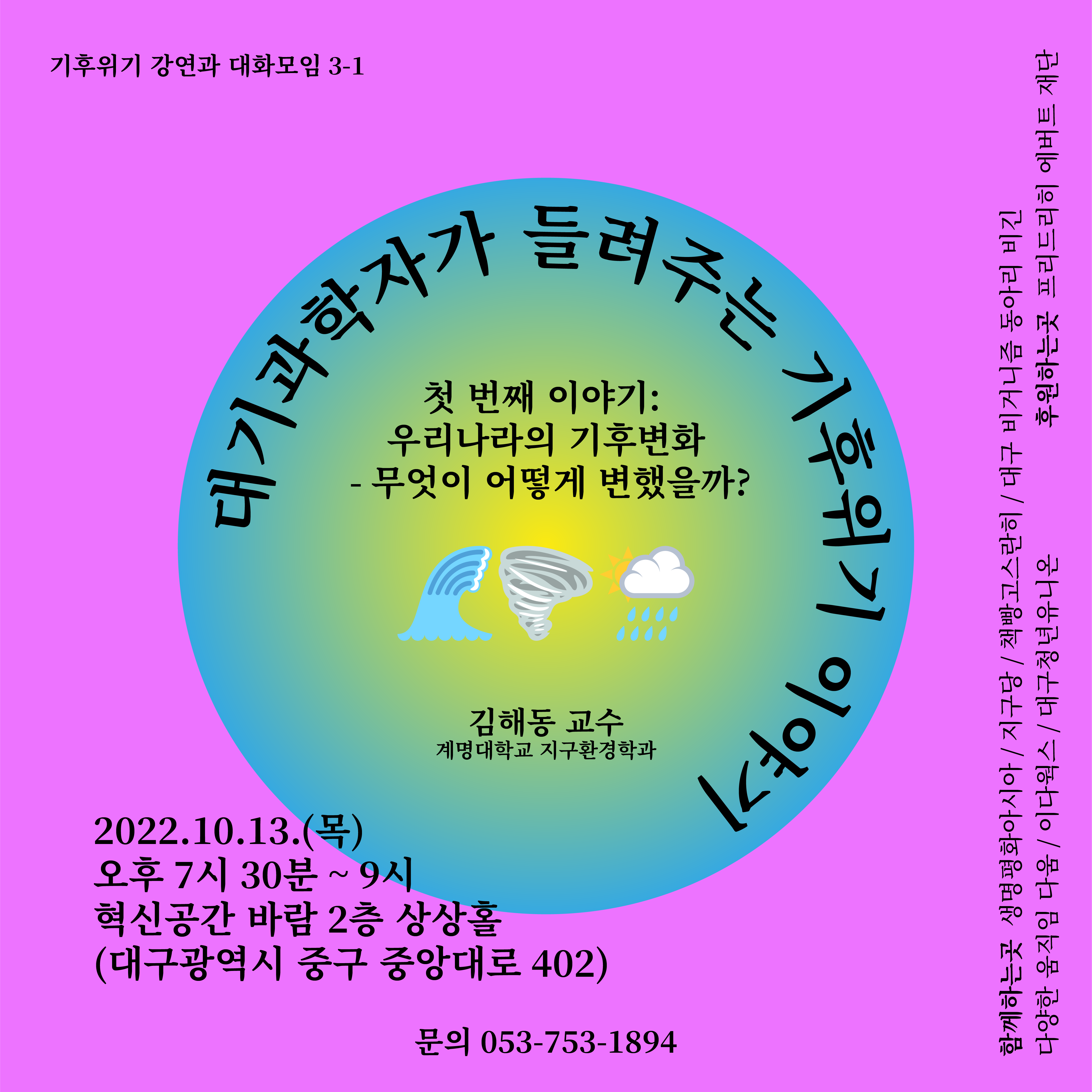 대기과학자가 들려주는 기후위기 이야기&대화모임 in 대구작성자 : 생명평화아시아 작성일 : 22-09-29