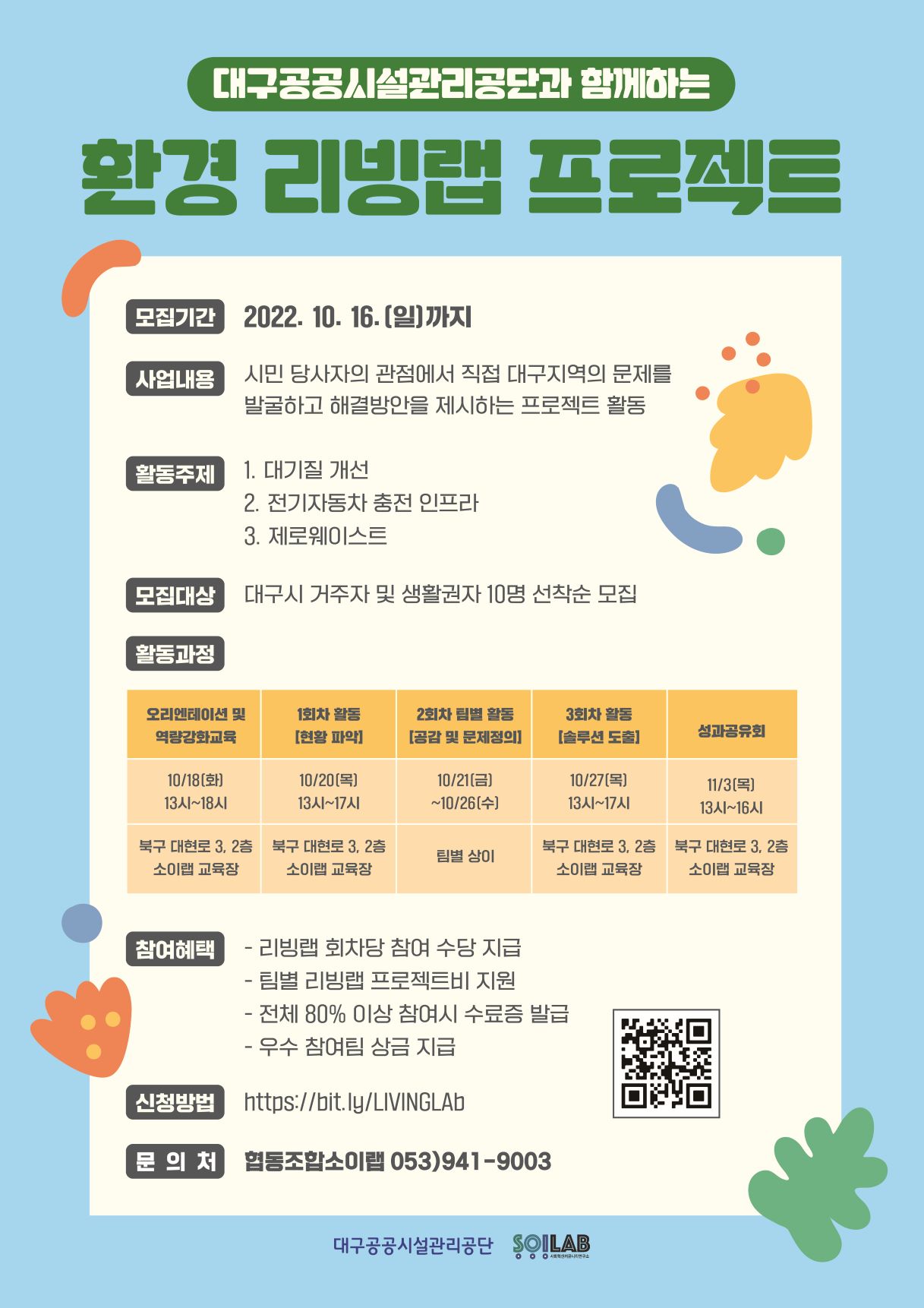 대구공공시설관리공단과 함께하는 🌿환경 리빙랩 프로젝트🌿 참여자 모집작성자 : 협동조합소이랩 작성일 : 22-10-05