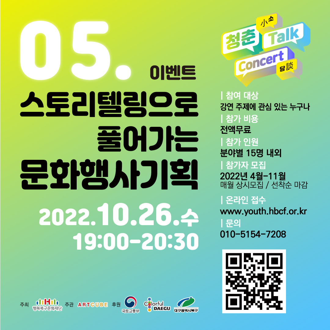 청춘 토크콘서트 소:담 제5강 - 문화행사기획 및 성공 사례작성자 : 손명범 작성일 : 22-10-11