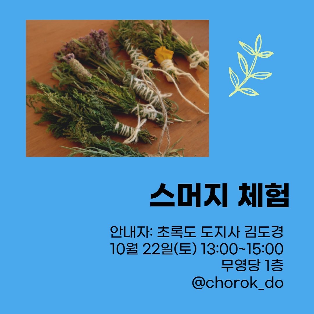 향으로 나를 돌볼 수 있어요. 일상을 초록(抄錄)하는 초록도와 함께 향으로 나를 돌아보고, 돌봅니다. 아무런 향이나 오일을 첨가하지 않았지만 향이 나는 스머지(허브스틱)를 만들며 초록을 가까이 합니다.