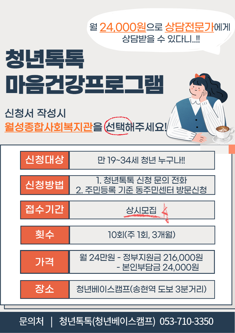 안녕하세요. 대구청년사회서비스사업단 "청년톡톡"입니다.