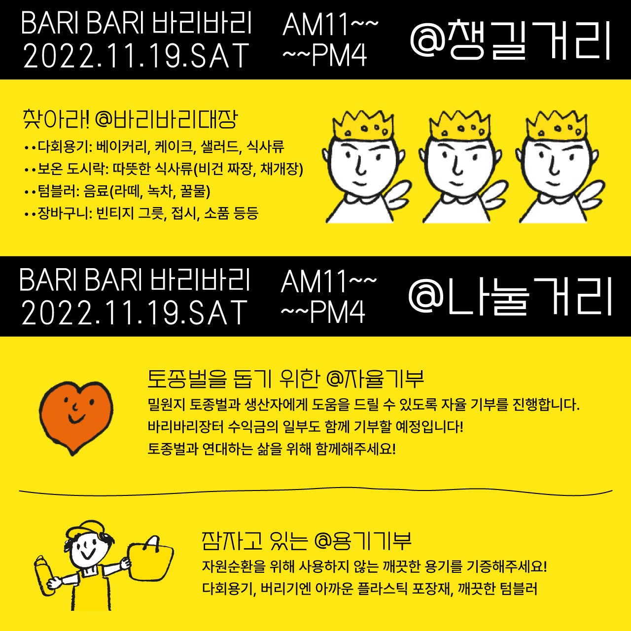 11월 쓰레기 없는 로컬장터 바리바리 📩BARI BARI v5.고마운 꿀벌🐝작성자 : 최송은 작성일 : 22-11-08