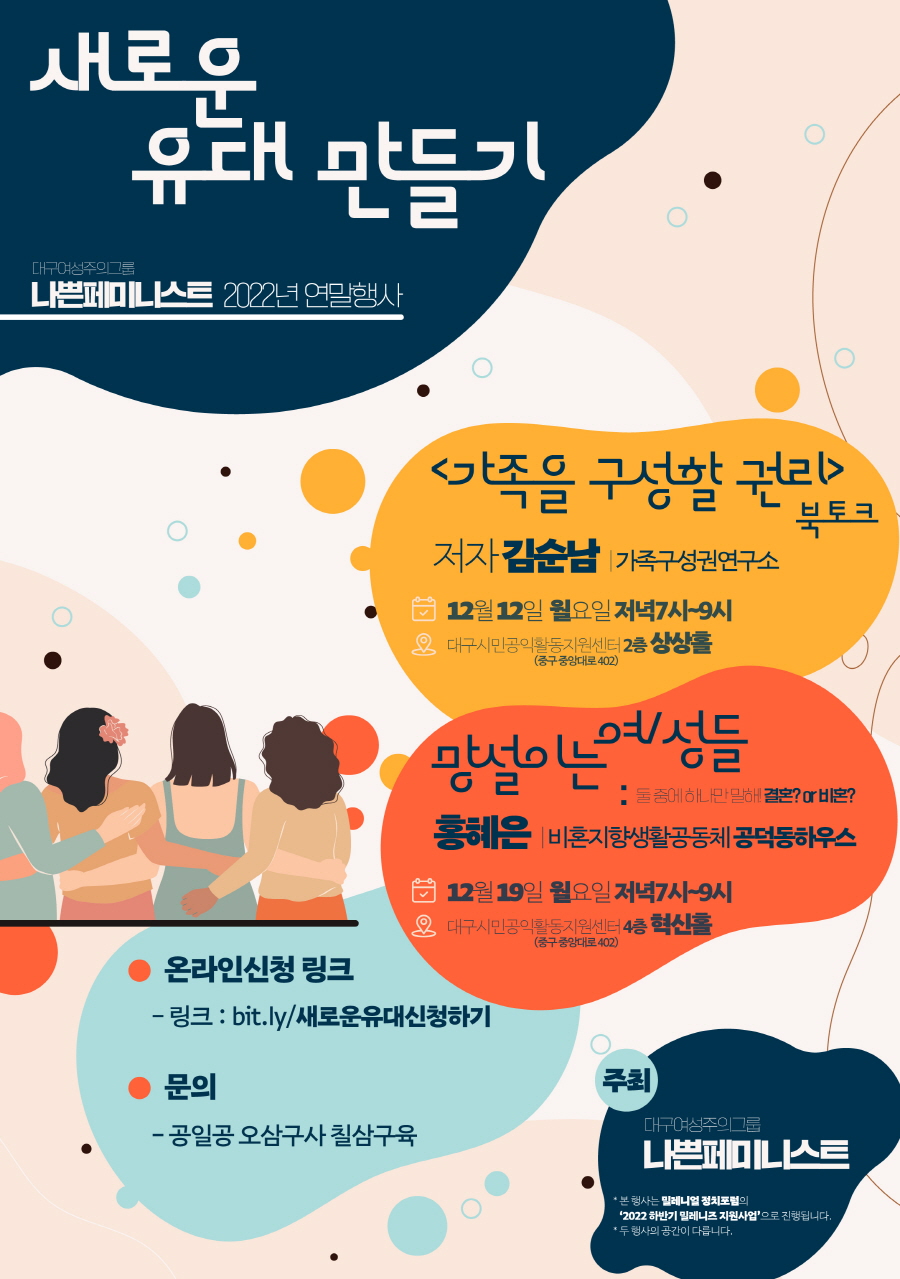 대구여성주의그룹 나쁜페미니스트 2022년 연말 행사 <새로운 유대 만들어가기>작성자 : 이나리 작성일 : 22-11-15