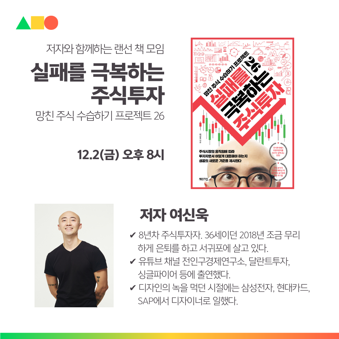 30대에 은퇴한 파이어족 <실패를 극복하는 주식투자> 여신욱 저자와의 만남작성자 : 황필권 작성일 : 22-11-28