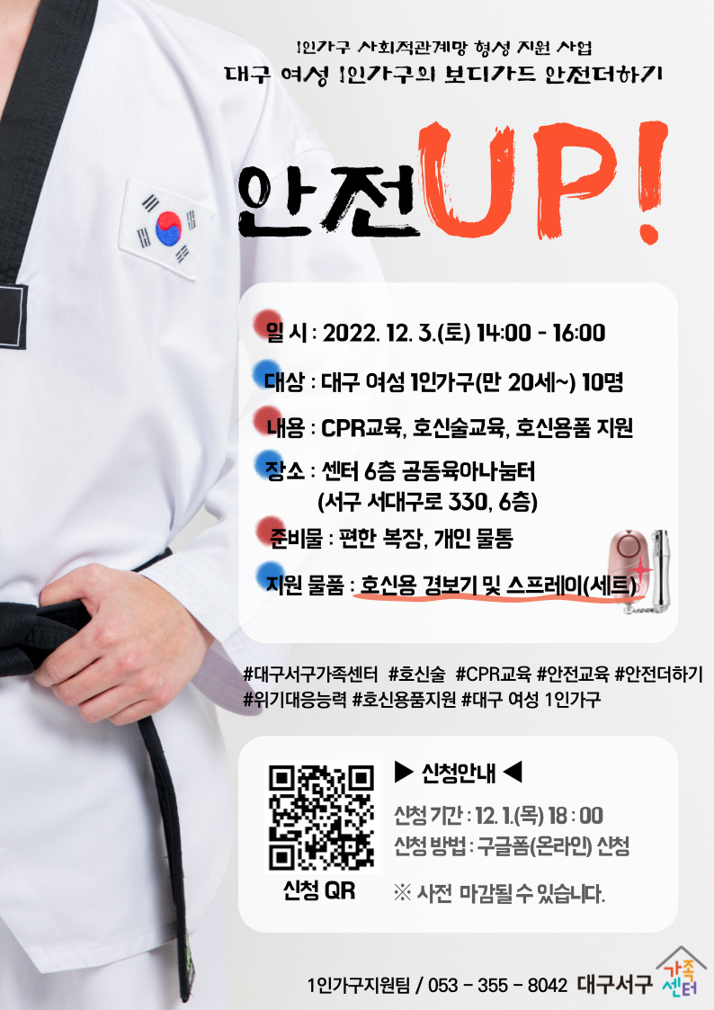 ◆ 2022년 1인가구 사회적관계망 형성 지원 사업 / 대구 여성 1인가구의 보디가드 안전더하기 "안전UP" 신청