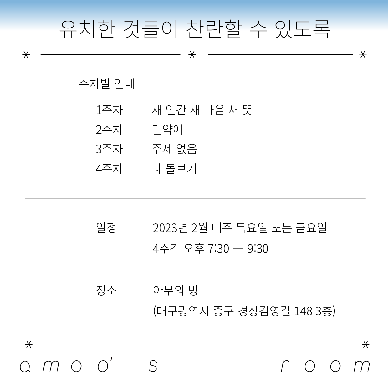 장소 : 아무의 방(대구광역시 중구 경상감영길 148 3층)