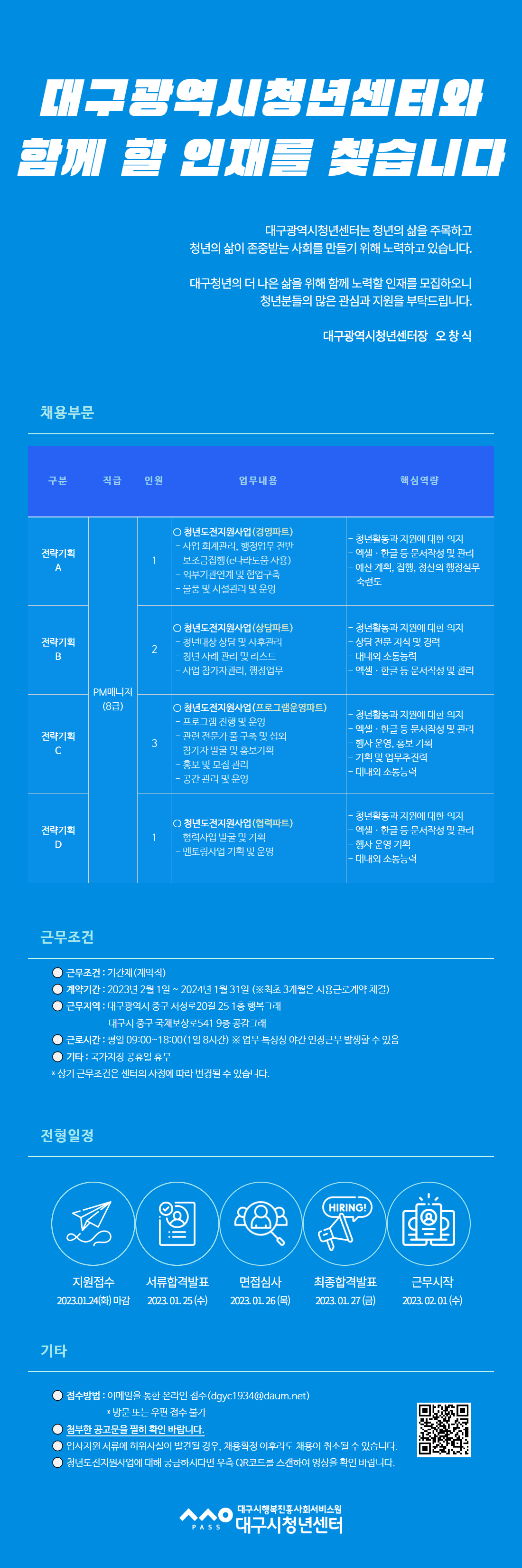[제2023-01호] 대구광역시청년센터 인재채용 공고작성자 : 젊프 작성일 : 23-01-16