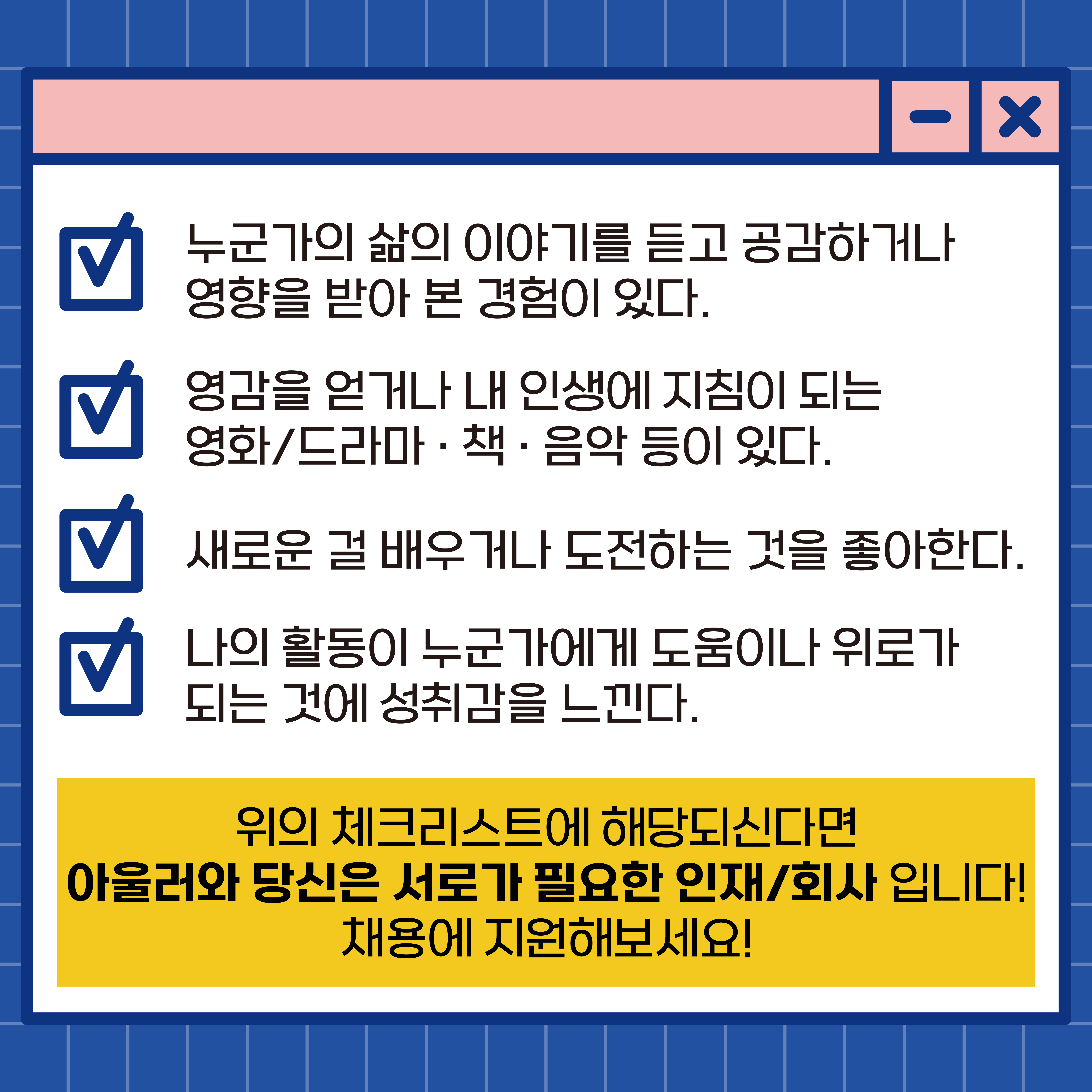 - 기간: 계약일로 부터 1년 (협의를 통해 정규 전환 가능 / 수습기간-3개월)