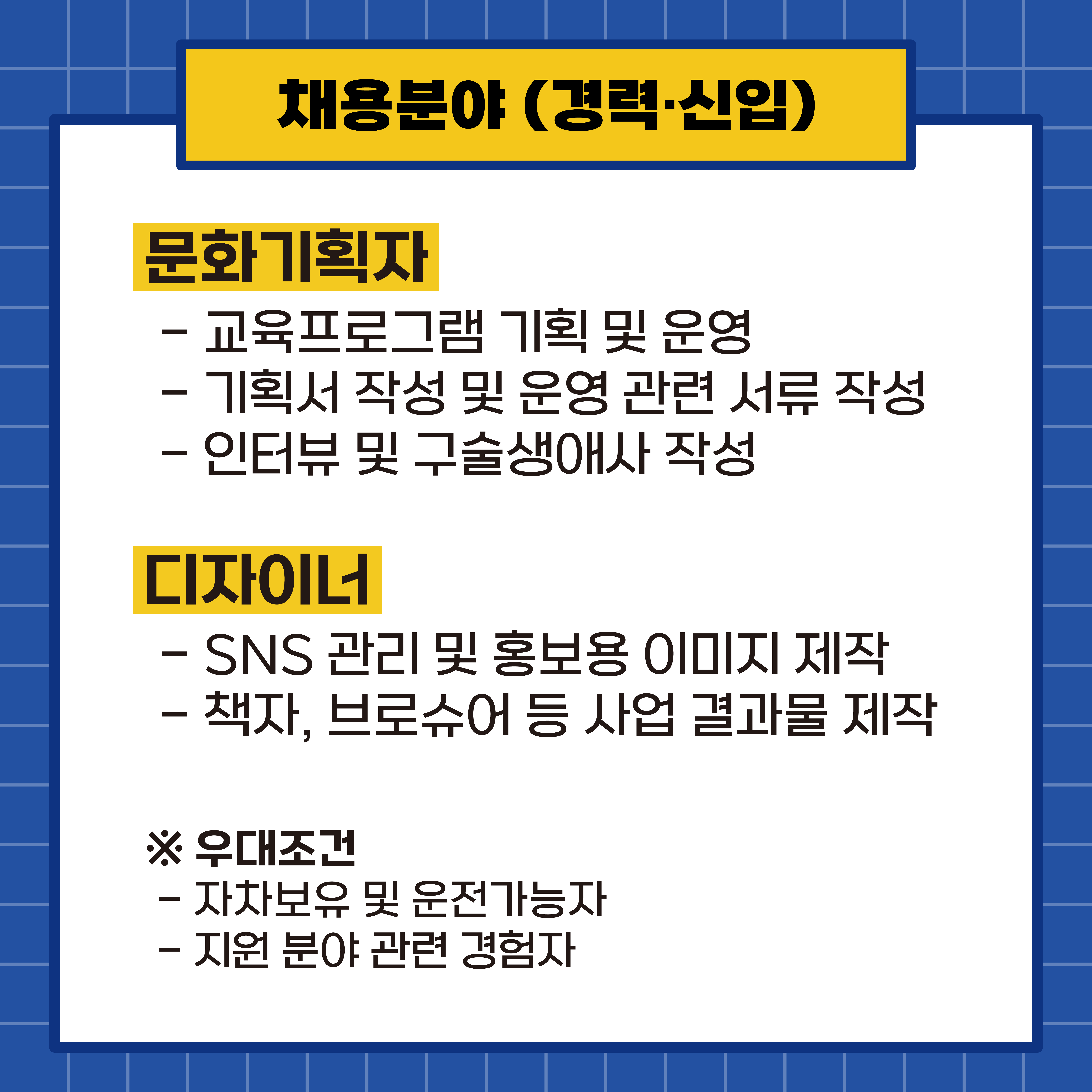 2023 문화기획자, 디자이너 (신입/경력) 채용작성자 : 박성익 작성일 : 23-02-03