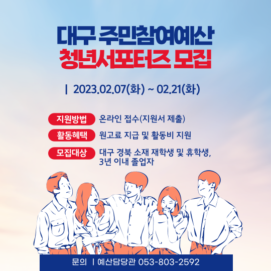 대구 주민참여예산 청년서포터즈 공개모집작성자 : 박상수 작성일 : 23-02-10
