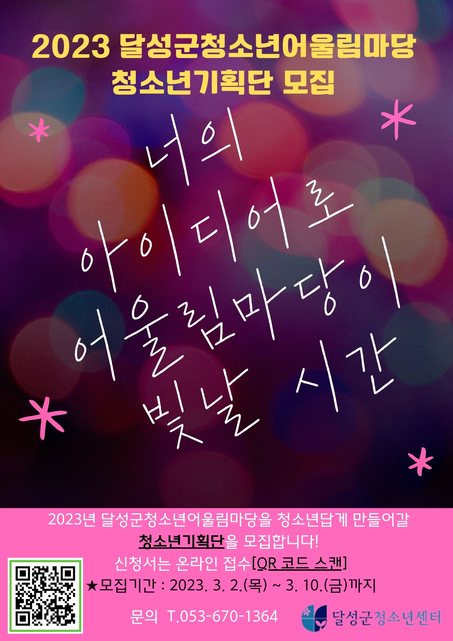 2023 달성군청소년어울림마당 기획단 모집작성자 : 김원영 작성일 : 23-03-07