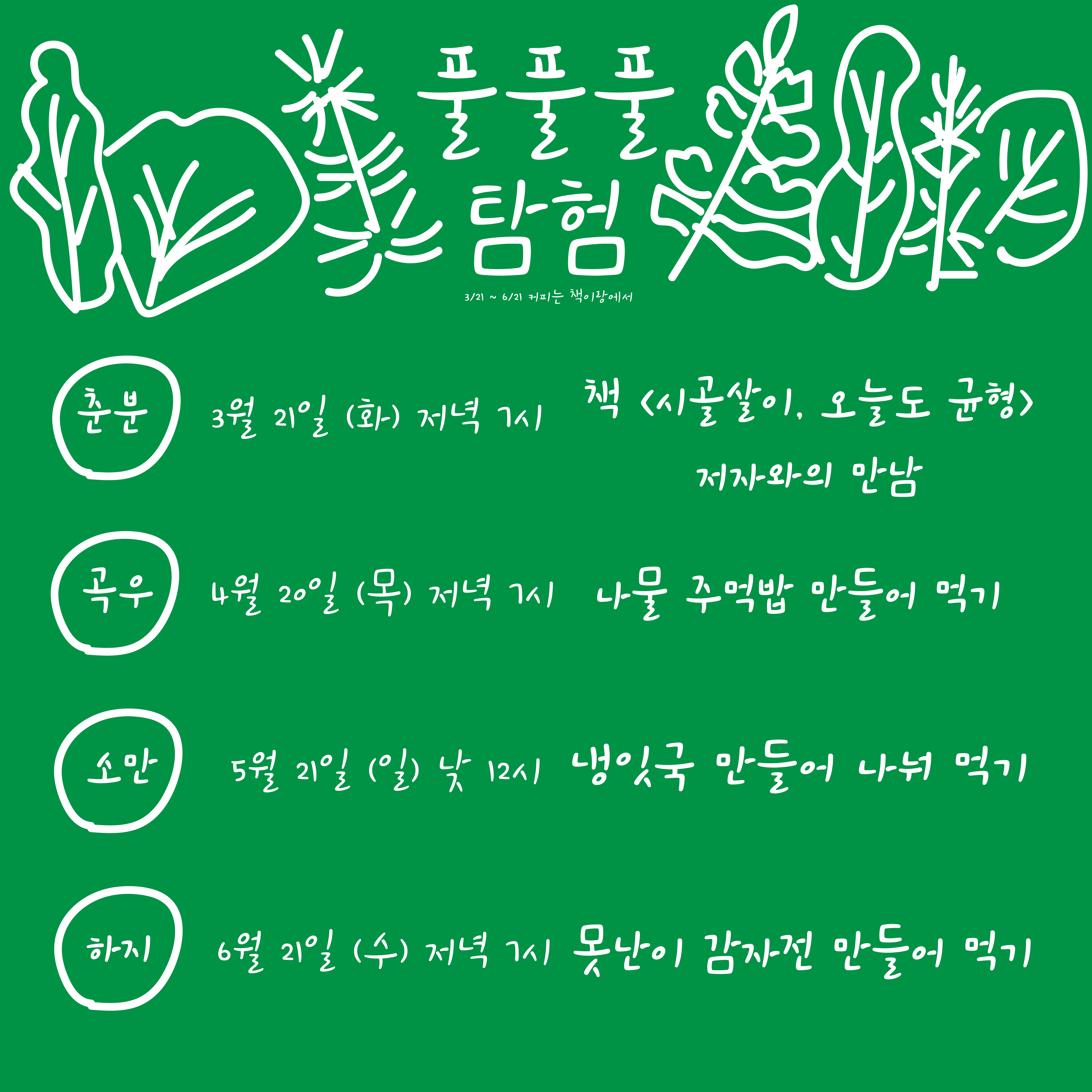 절기마다 만나서 챙겨 읽고 함께 하는 삶 #풀풀풀탐험 에 초대합니다.