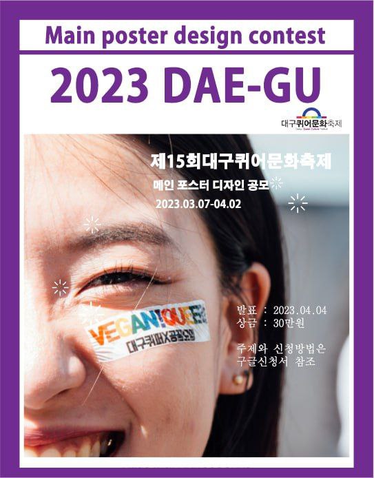 2023년 제15회 대구퀴어문화축제의 메인 포스터 디자인을 공모합니다!