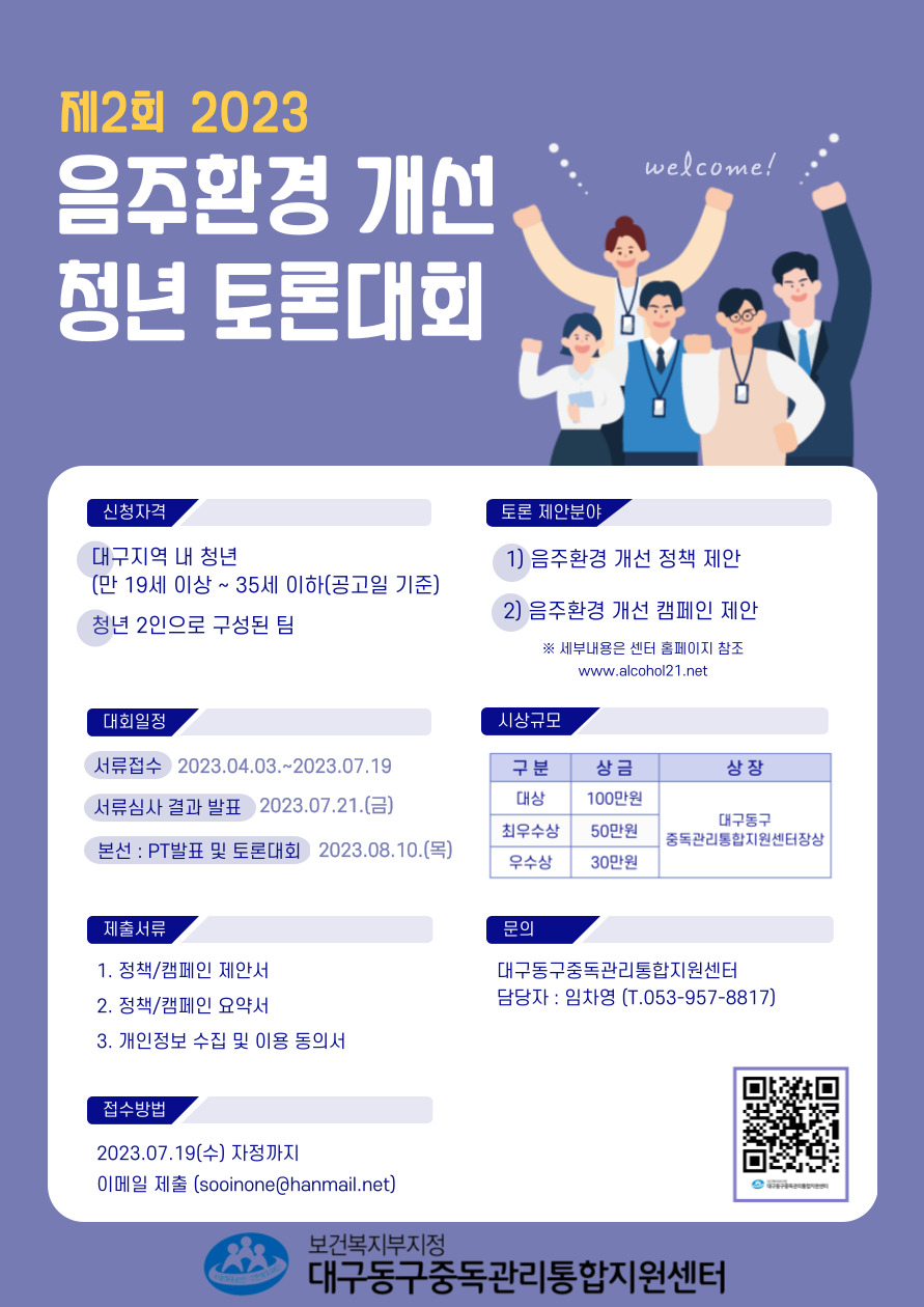 본 센터에서는 올해 제2회 '음주환경 개선 청년 토론대회'를 개최합니다