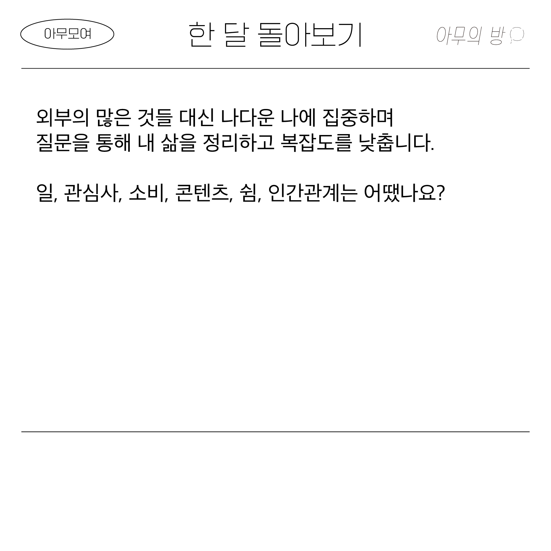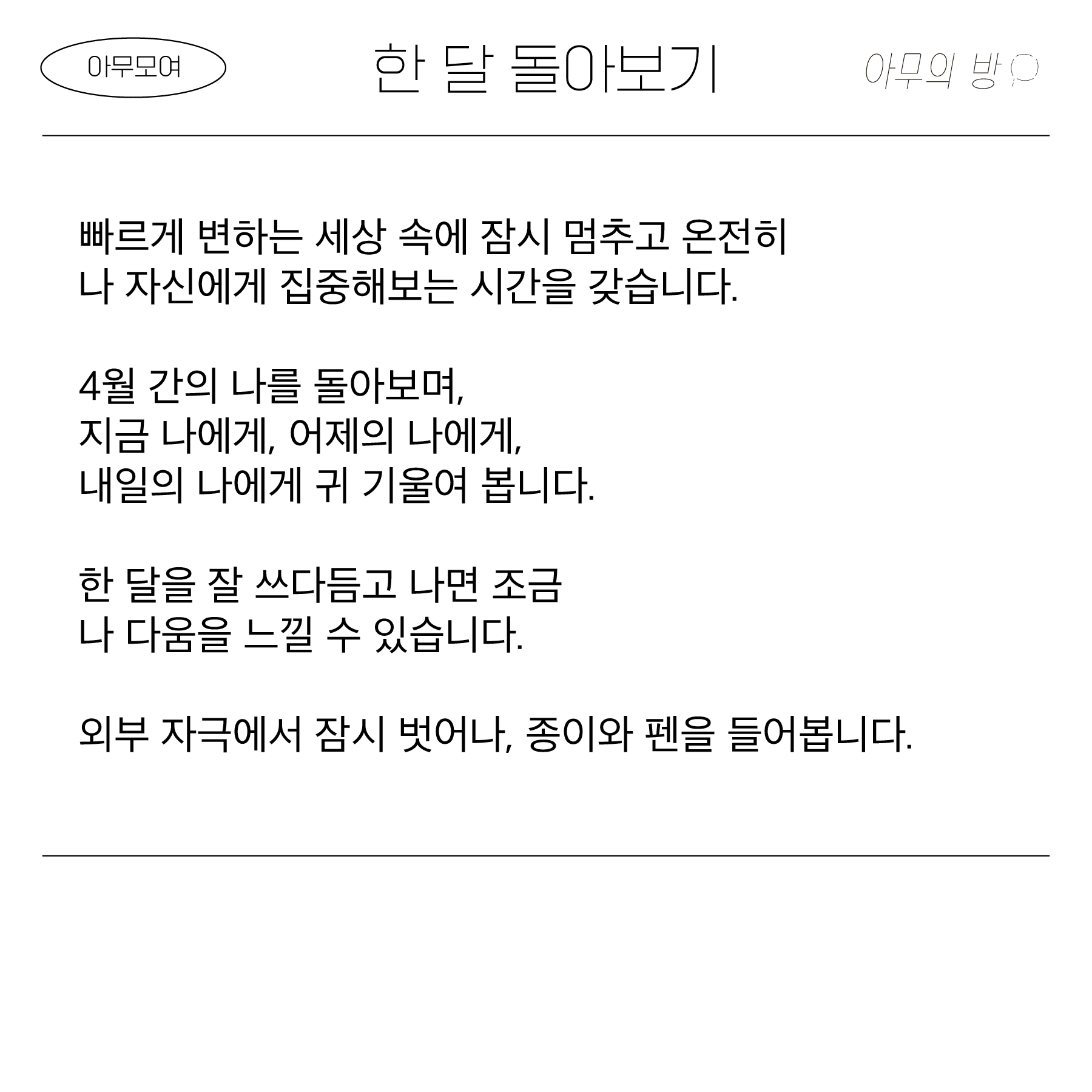 한 달을 잘 쓰다듬고 나면 조금 나다움을 느낄 수 있습니다.