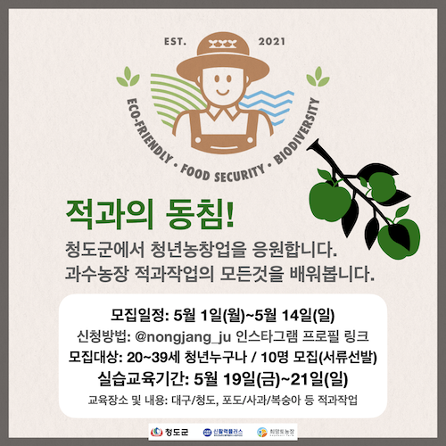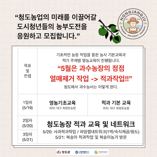 #농장주 #파밍랩 #청도 #청도신활력플러스추진단 #희망토농장 #청도농장 #적과 #열매 #사과 #복숭아 #기초농사교육 #5월