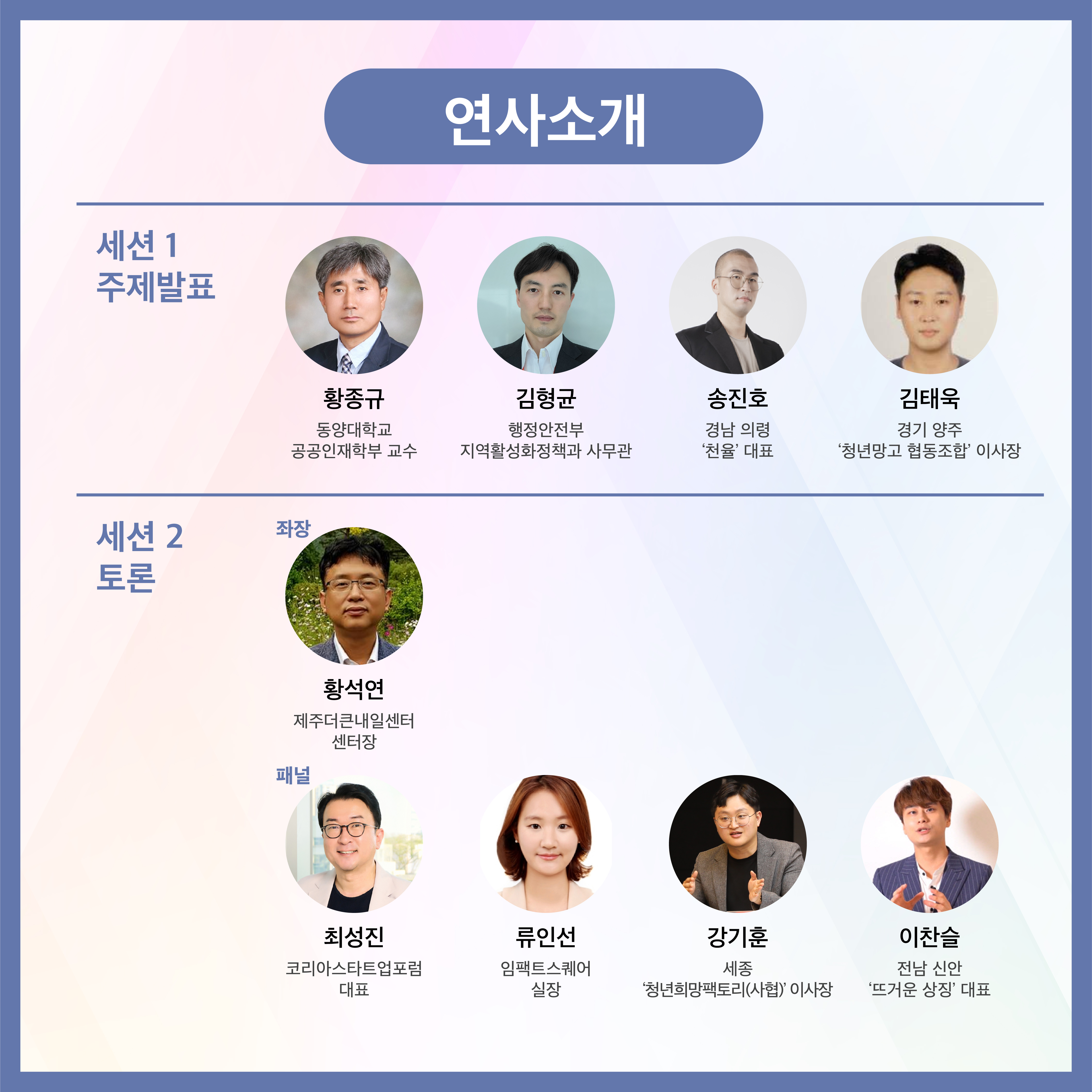 민·관의 사례 공유와 더불어 그 역할을 논의하고자 합니다.