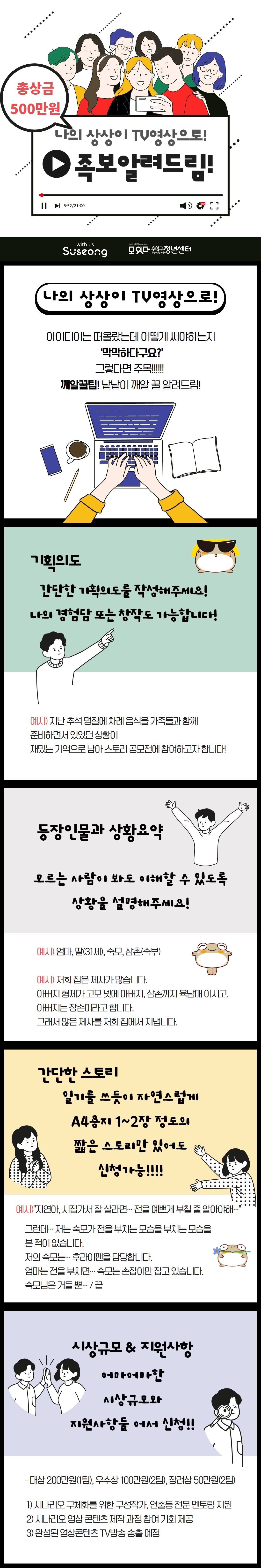 "청년들의 창작의욕 고취와 문화 발산을 위해 청년 영상 스토리를 공모합니다!"