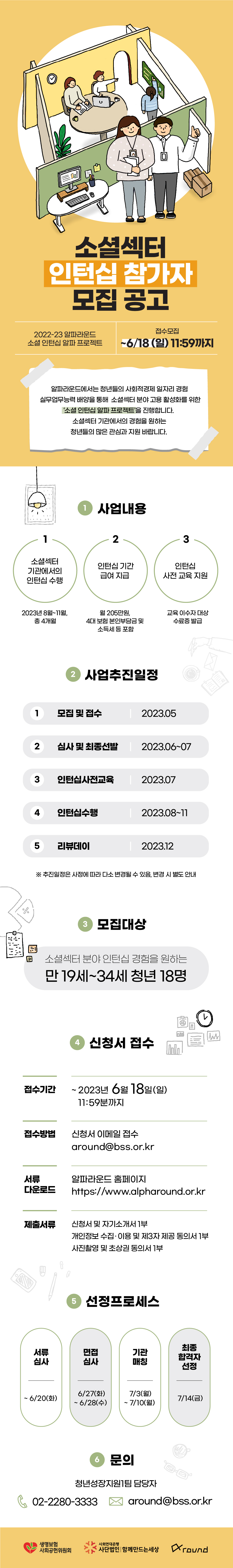 [소셜인턴십알파프로젝트] 소셜섹터 인턴십 참가자 모집 (~6/18)작성자 : 남영현 작성일 : 23-05-24