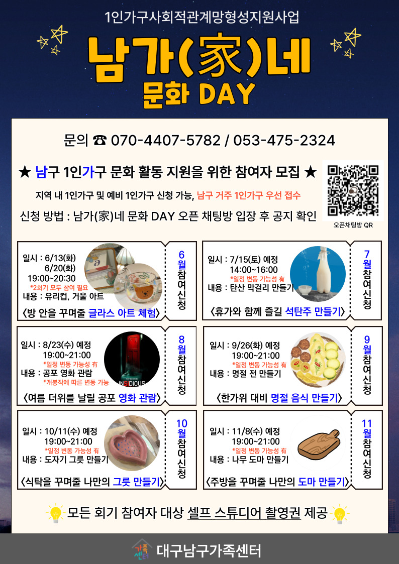 #대구남구가족센터 #1인가구사회관계망지원사업 #1로만난사이 #남가네문화day #문화활동