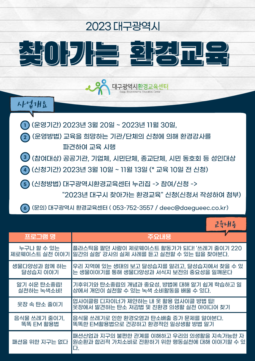 2023 대구광역시 찾아가는 환경교육작성자 : 임호영 작성일 : 23-06-05
