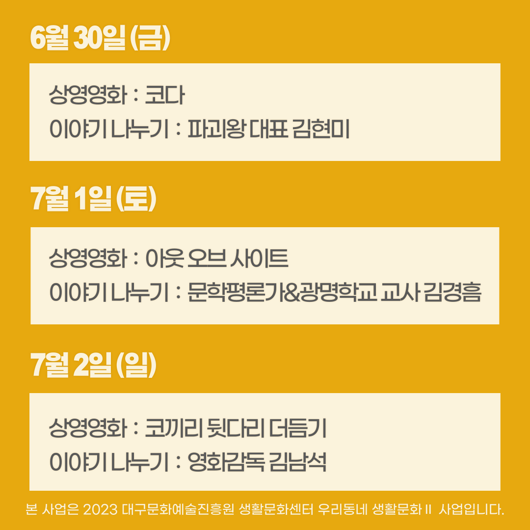 📌본 사업은 2023 대구문화예술진흥원 생활문화센터 우리동네생활문화Ⅱ 사업입니다.