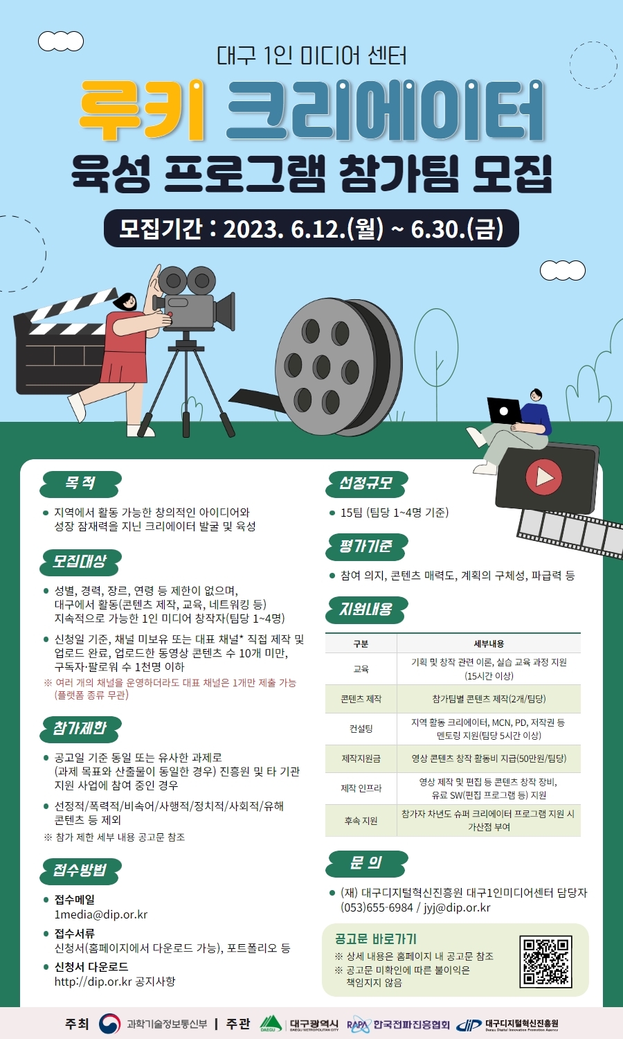 • 대구에서 지속적으로 활동 가능한 1인 미디어 창작자(팀당1~4명)