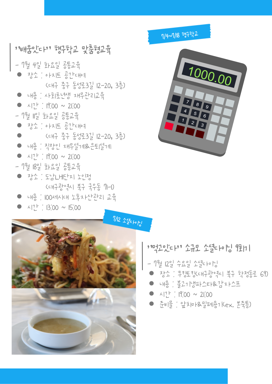 ★1인가구 관계망형성지원 사업 7월 프로그램 OPEN★작성자 : 홍지우 작성일 : 23-06-19
