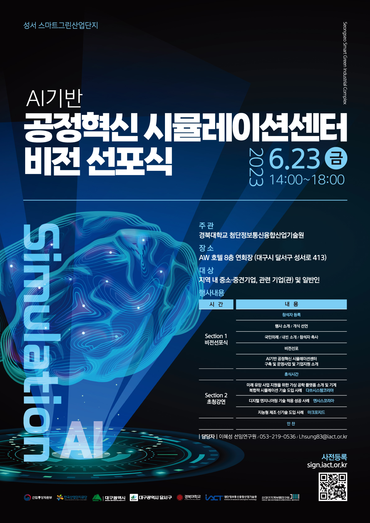 AI기반 공정혁신 시뮬레이션센터 비전 선포식 개최 안내작성자 : 이혜성 작성일 : 23-06-19