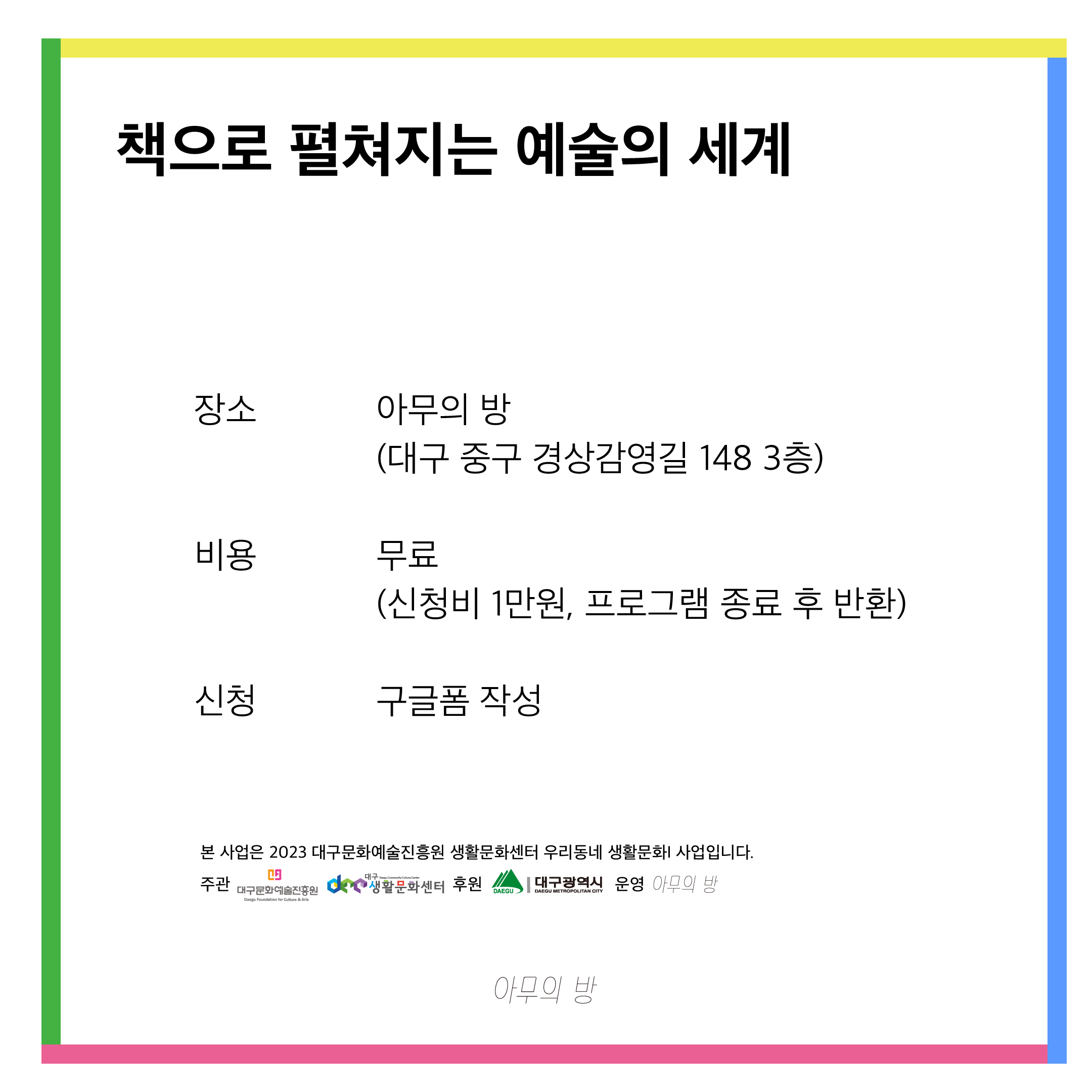 장소: 아무의 방 (대구광역시 중구 경상감영길 148 3층)