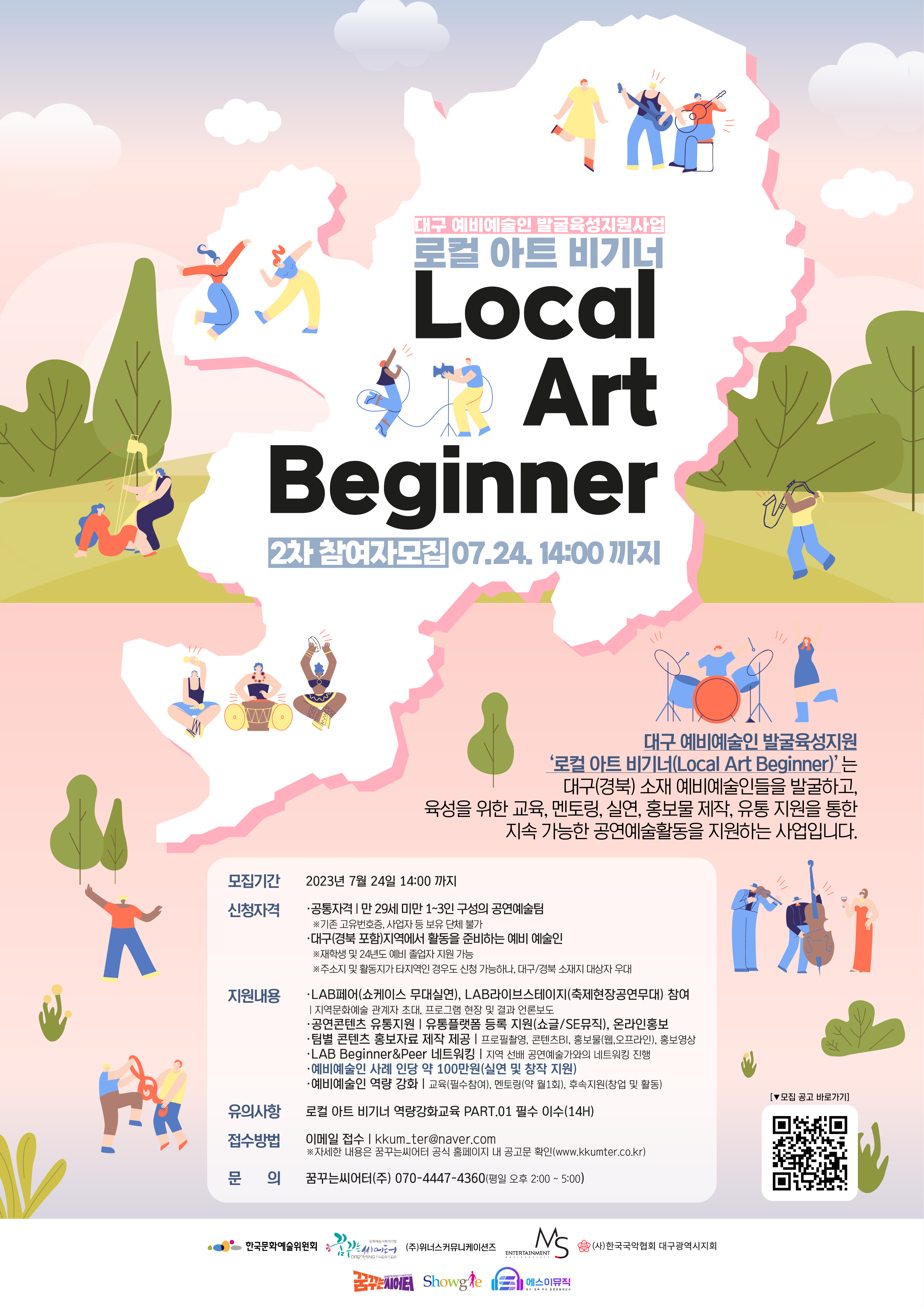 ✔ 대구(경북)를 중심으로 지속 가능한 공연예술활동을 희망하는 대구 예비예술인 발굴육성지원사업 “로컬 아트 비기너(Local Art Beginner)”를 참여할 예비예술인을 모집합니다.