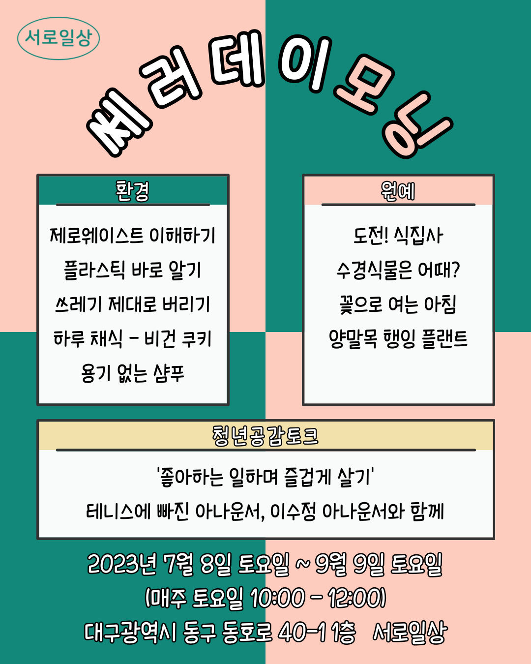 [동친쌀롱] 쎄러데이 모닝 -대기자 추가 모집작성자 : 임주희 작성일 : 23-07-04