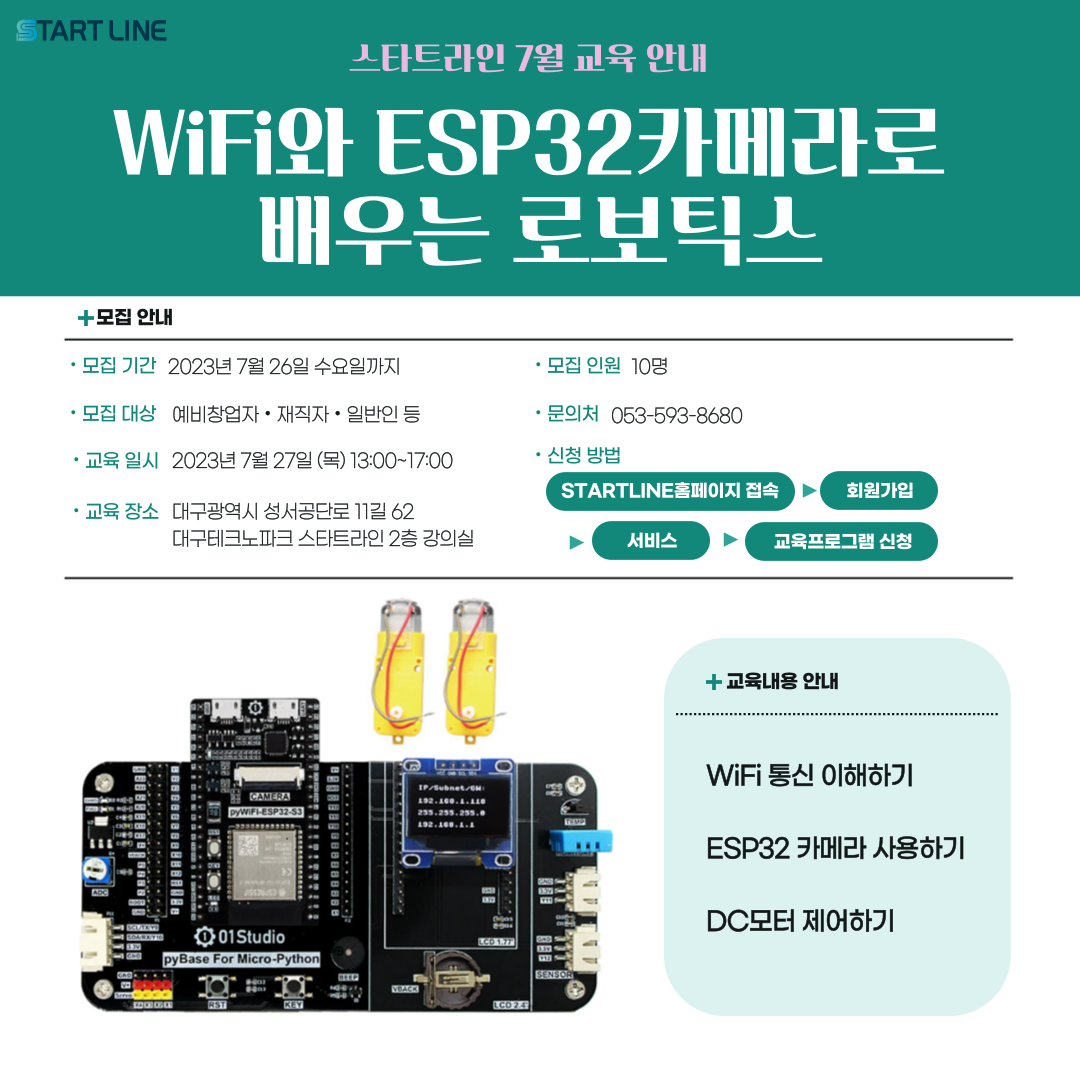 📢메이커스페이스 전문랩 스타트라인에서 'WiFi와 ESP32 카메라로 배우는 로보틱스' 교육을 진행합니다!