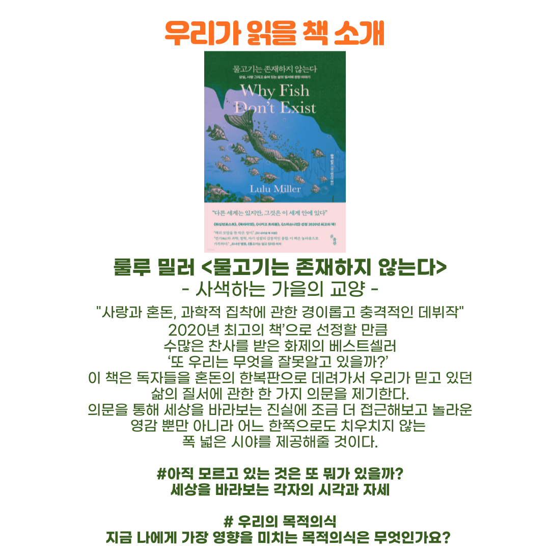 [독서모임] 물고기가 존재하지 않는다고?작성자 : 박민진 작성일 : 23-07-17