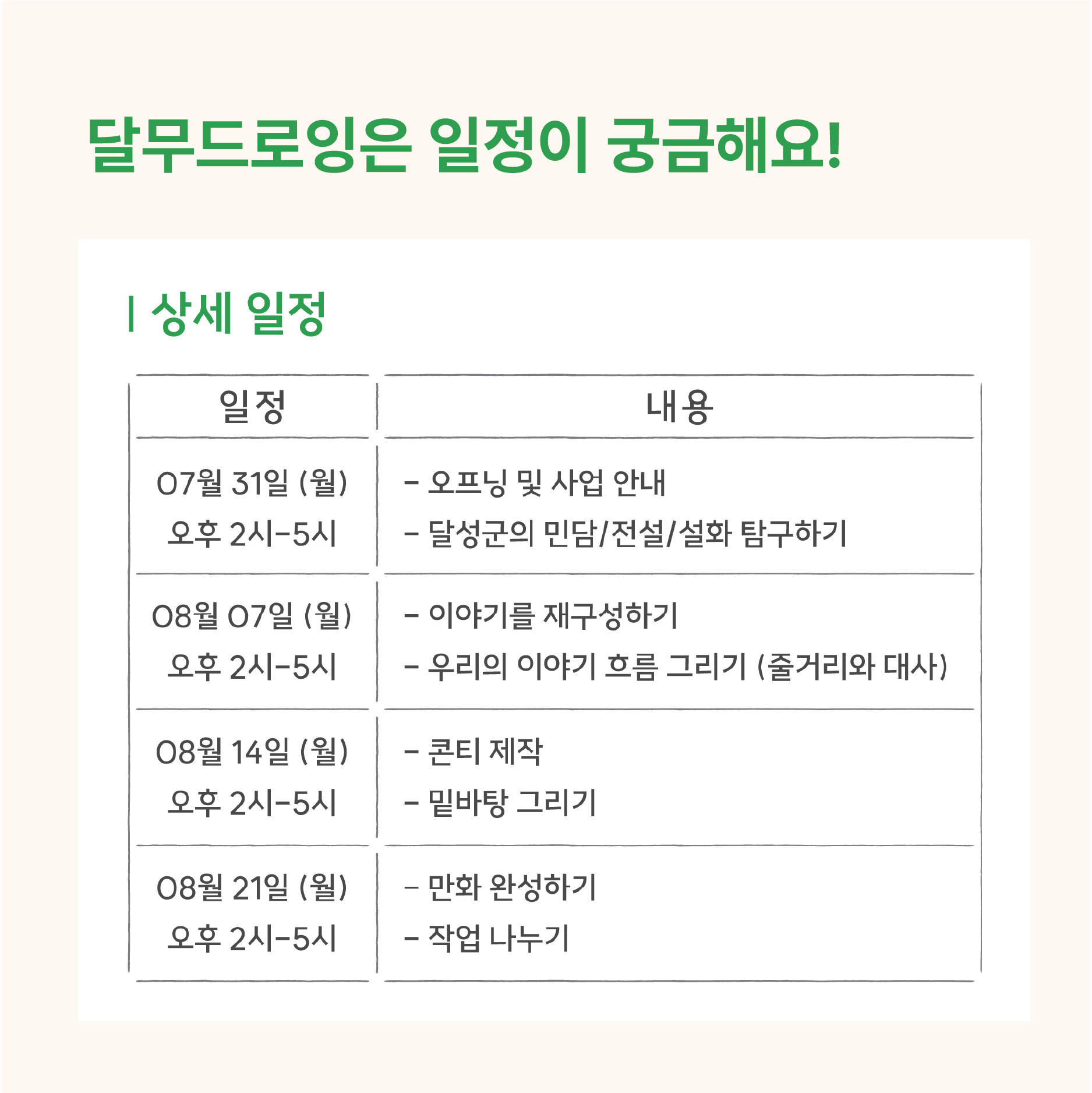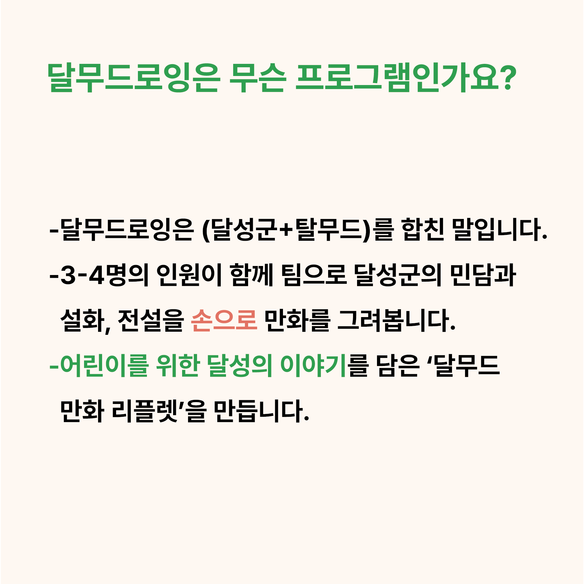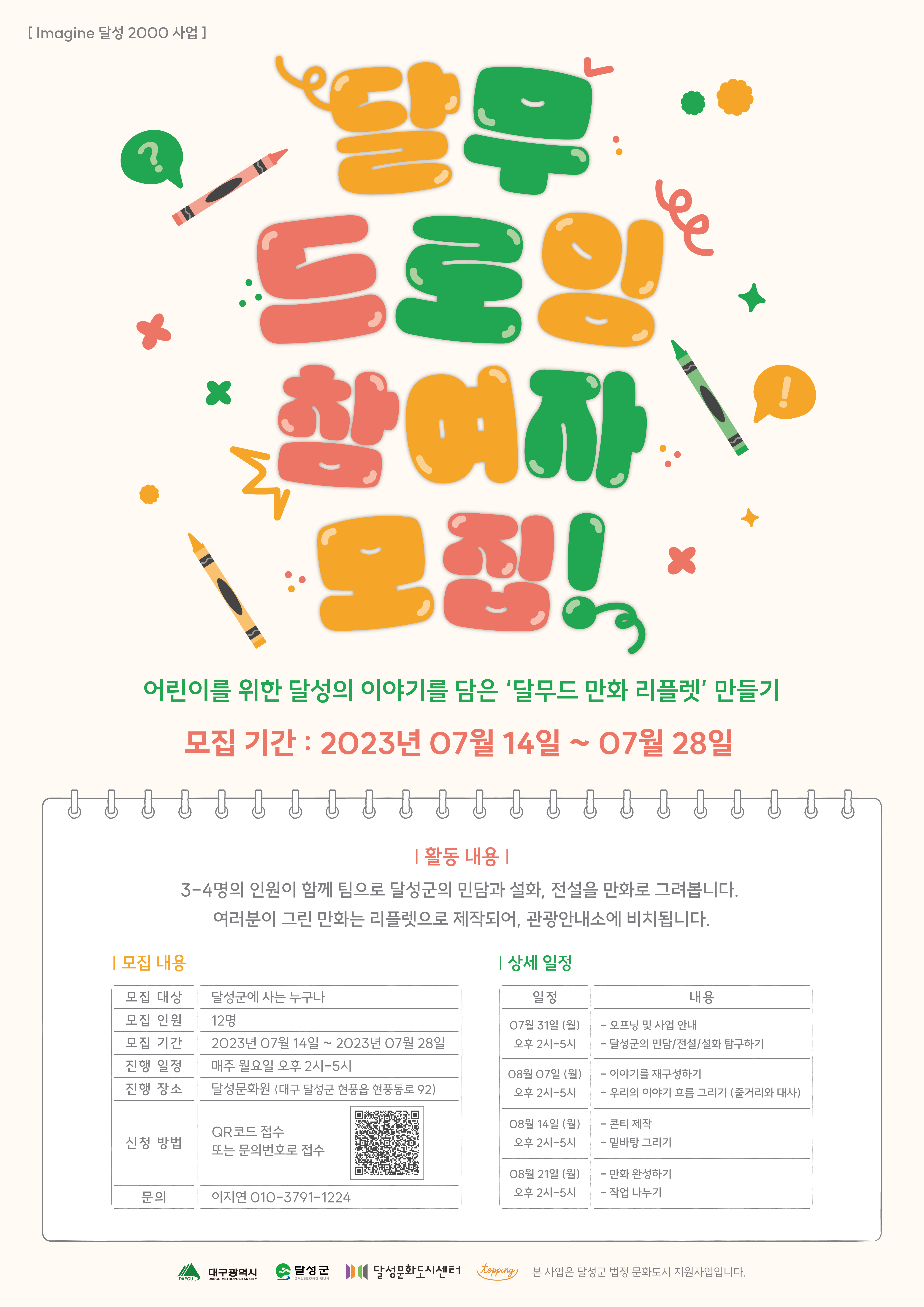 대구 달성군의 이야기를 만화로! 달무드 참여자 모집작성자 : 이지연 작성일 : 23-07-19