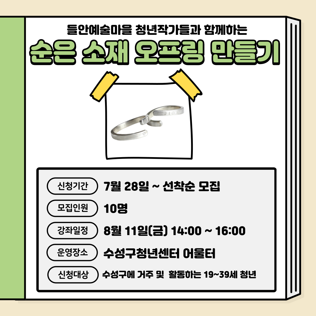 💡신청방법 : 수성구청년센터 홈페이지 신청(선착순)💡