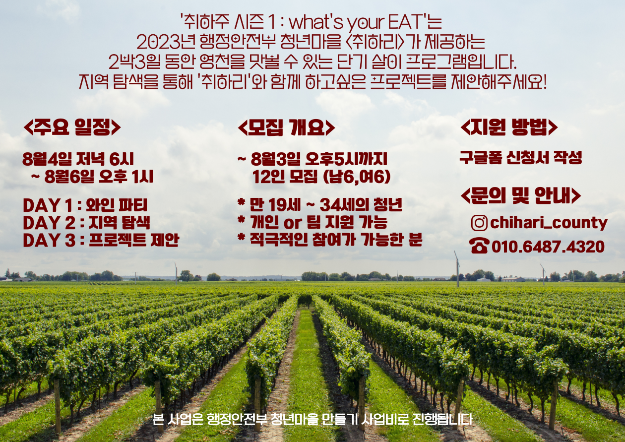 영천시 2023년 행정안전부 청년마을 <취하리>입니다.