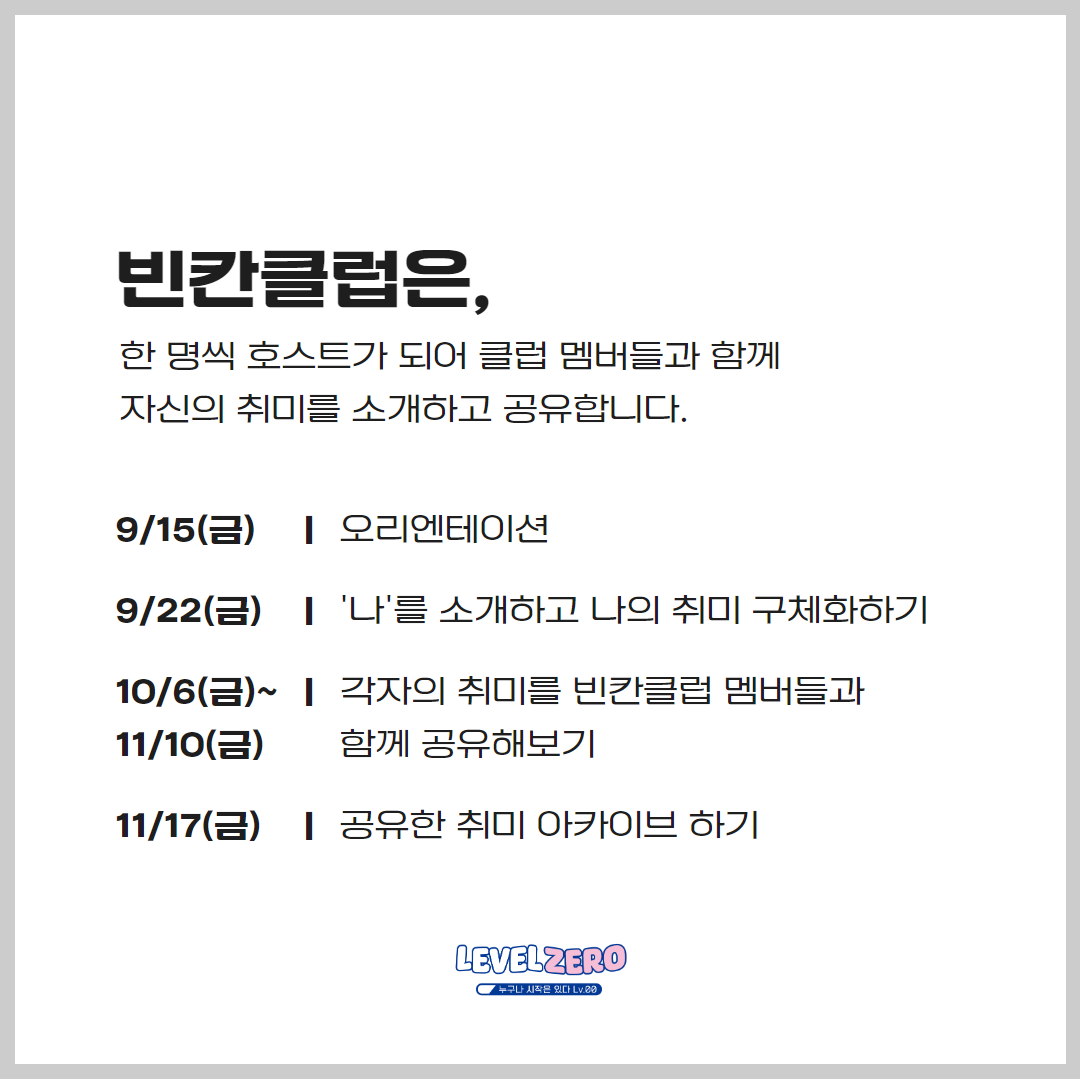 이번 빈칸클럽은 [취미공유] 클럽입니다.빈칸클럽 3기 [취미공유클럽]에서는,