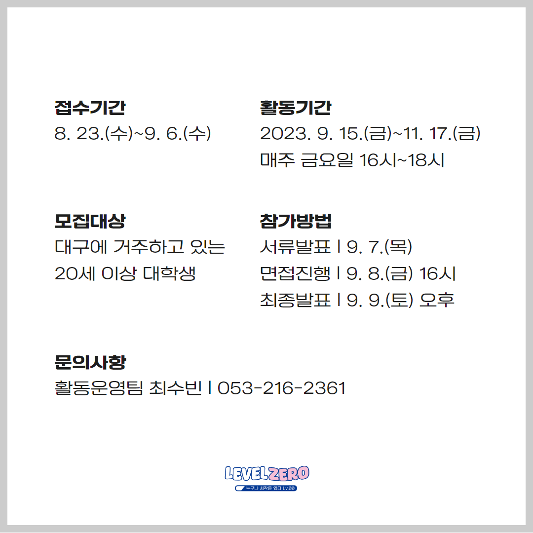♥문의사항: 053-216-2361/활동운영팀 최수빈