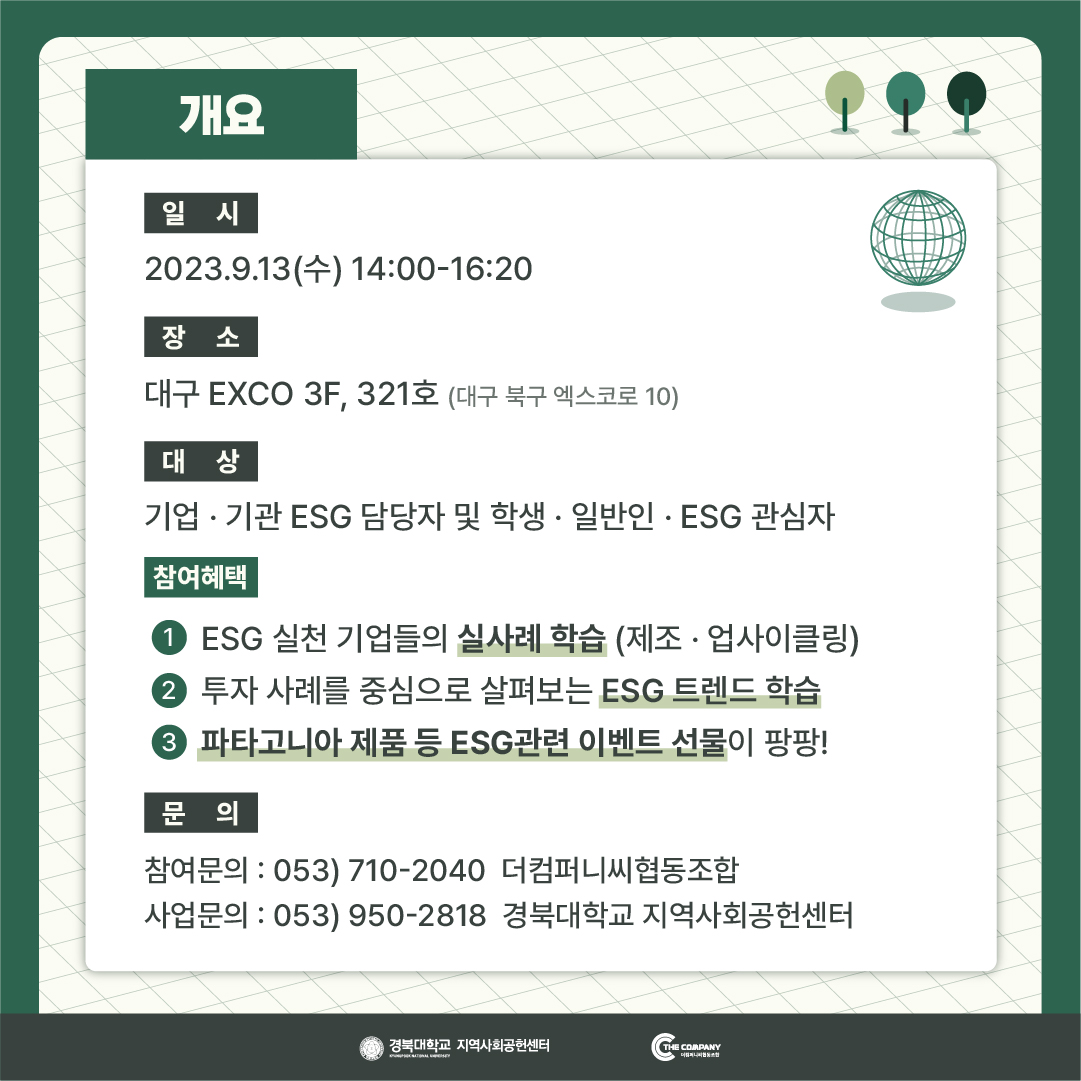 <2023 경북대학교 지역사회공헌센터 ESG포럼> ESG로 성장하는 지역사회 네트워크작성자 : 강은경 작성일 : 23-08-30