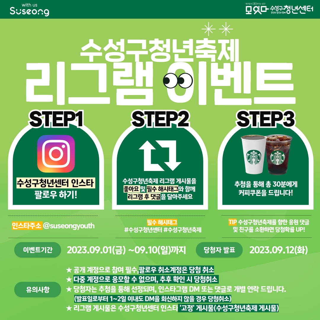 수성구청년축제 리그램 이벤트작성자 : 수성구청년센터 작성일 : 23-09-04