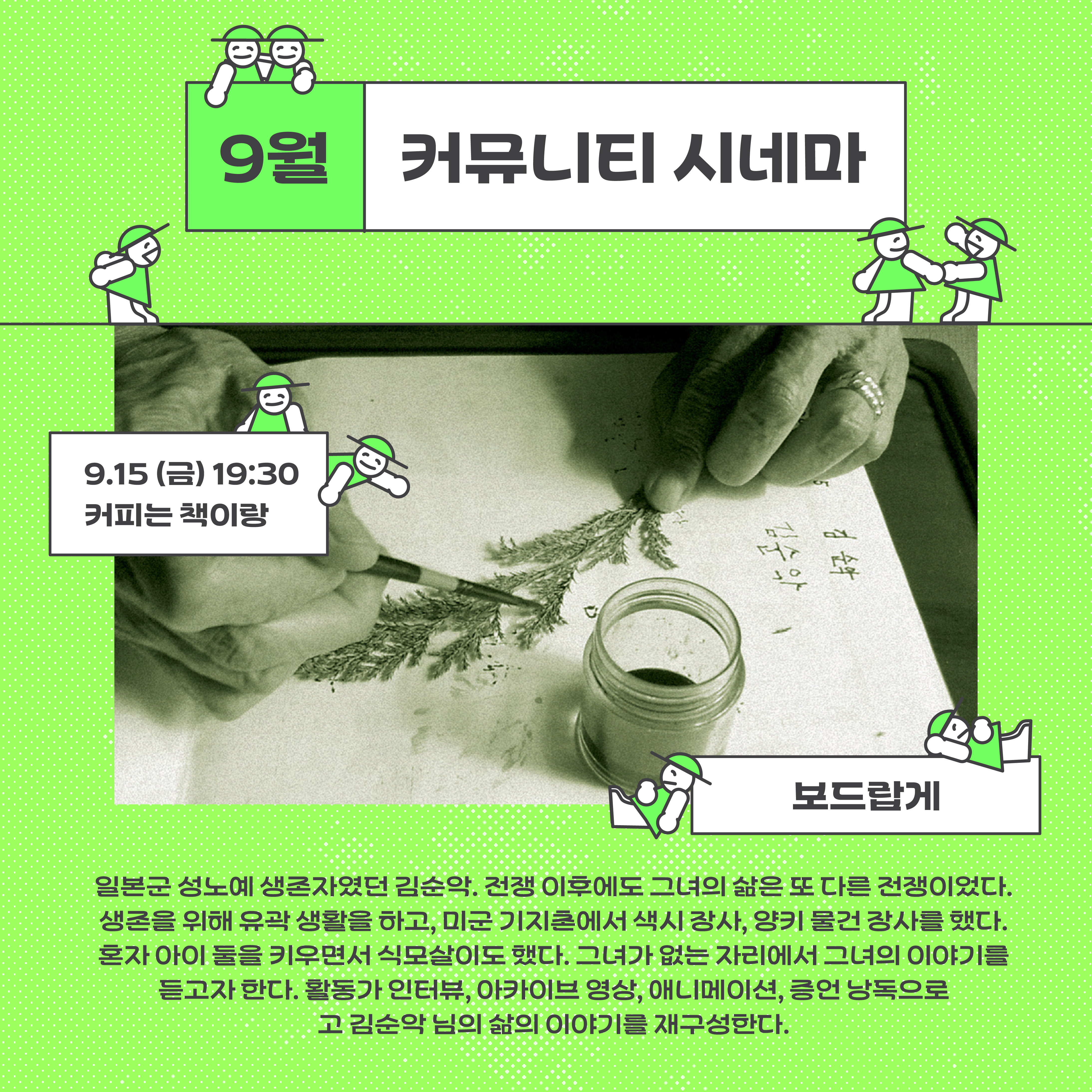카페 책방 <커피는 책이랑>에서 9월 커뮤니티 시네마 시간을 가집니다.