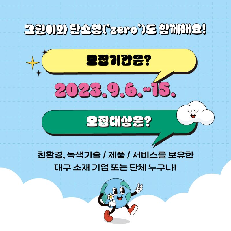 2023 대구 그린라이프 페스타 참가 기업 모집 (~9/15)작성자 : 이지현 작성일 : 23-09-12