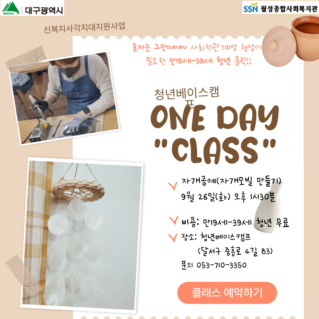 만19세-39세 원데이클래스 참여자 모집작성자 : 김희숙 작성일 : 23-09-15