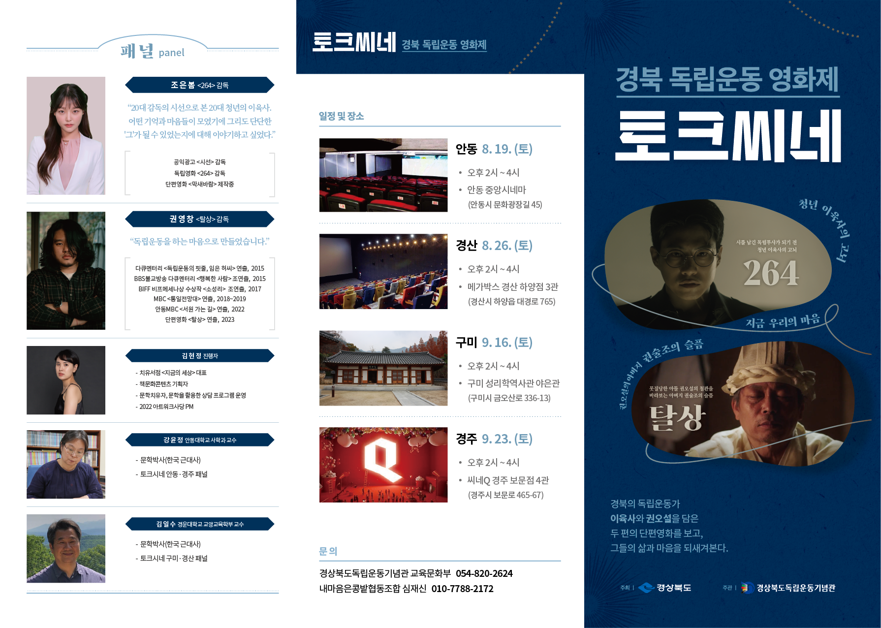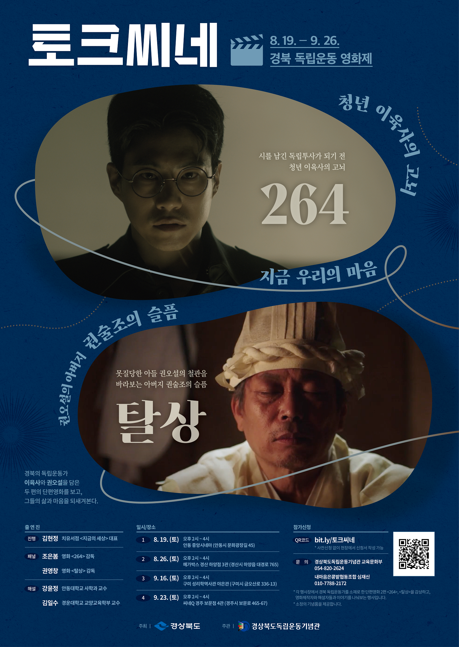 안녕하세요, 경상북도 독립운동기념관에서 주관하는 경북독립운동영화제 토크씨네가 9월 23일 토요일 오후 2시, 씨네큐 경주보문점에서 열립니다.