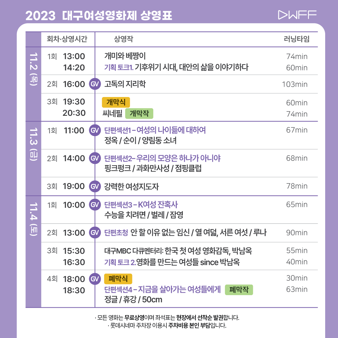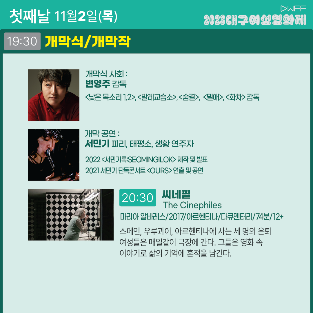 2023 대구여성영화제에 초대합니다!작성자 : 이은진 작성일 : 23-10-24