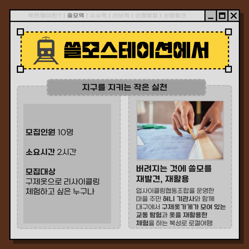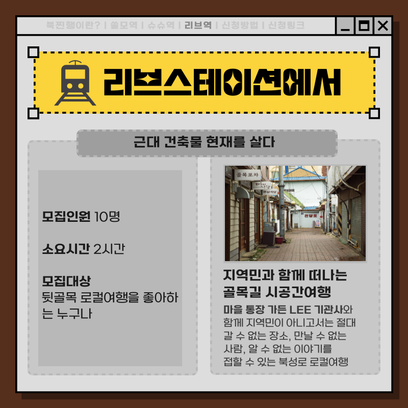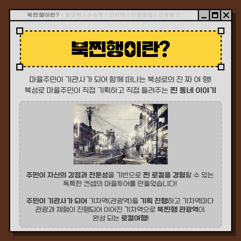 드디어 11월 7일 화요일 북찐행 기관사와 함께 마을 주민이 만든 북성로 진짜 여행을 떠납니다🤩