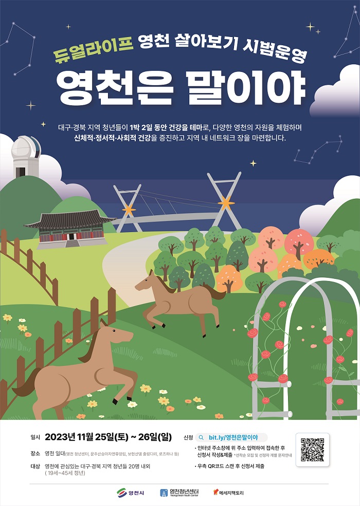[영천은 말이야] 1박2일 듀얼라이프 영천살아보기 캠프 신청자 모집작성자 : 손아현 작성일 : 23-11-02